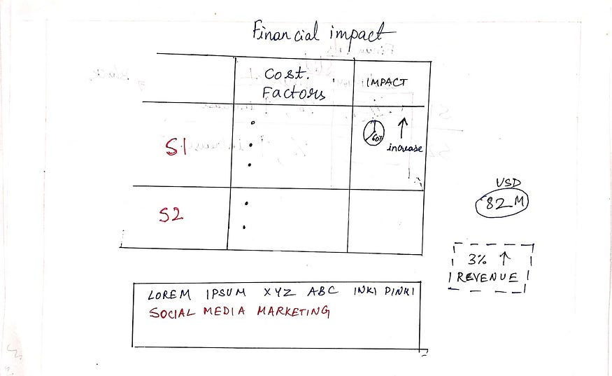 This would exhibit the fact that you have thoroughly thought about your solution. It would also make your life easier since you’ll be able to quantify the impact and risks it can have on the case subject, for a best and worst-case scenario. Here’s a brief template that I prepared that you can exhibit (Don’t mind the content, the slides had to be handwritten in our contest xD)
