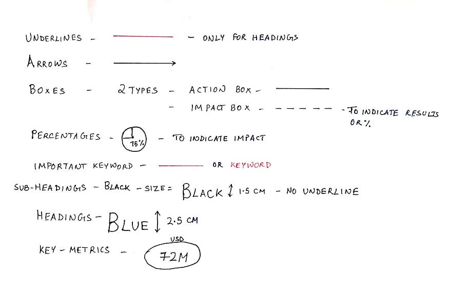 Yeah, someone had to say it. It is very likely that there will be ego-clashes within the team, particularly between the ones with similar personalities. But remember that not everyone needs to work on framing the recommendations. It is ideal that the team leaves the detailing to the best 2–3 individuals with relevant skill sets, while others look to complement their efforts. So now that we’re done with who’s doing what, let’s look at how the big picture of your presentation should look like.